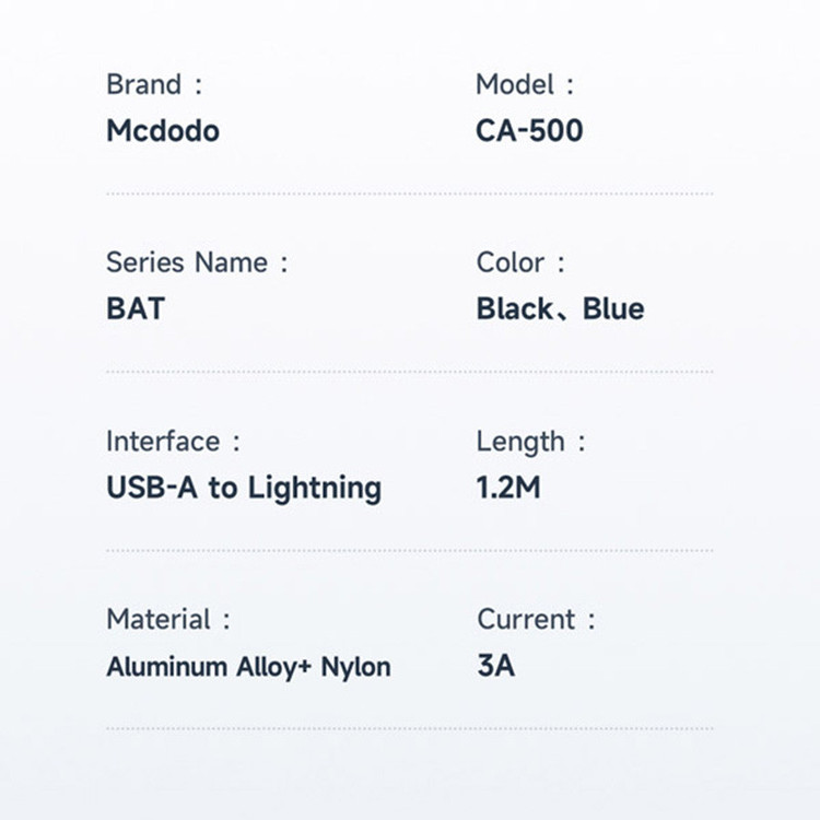 کابل آیفونی فست شارژ Mcdodo CA-500 3A 1.2m
