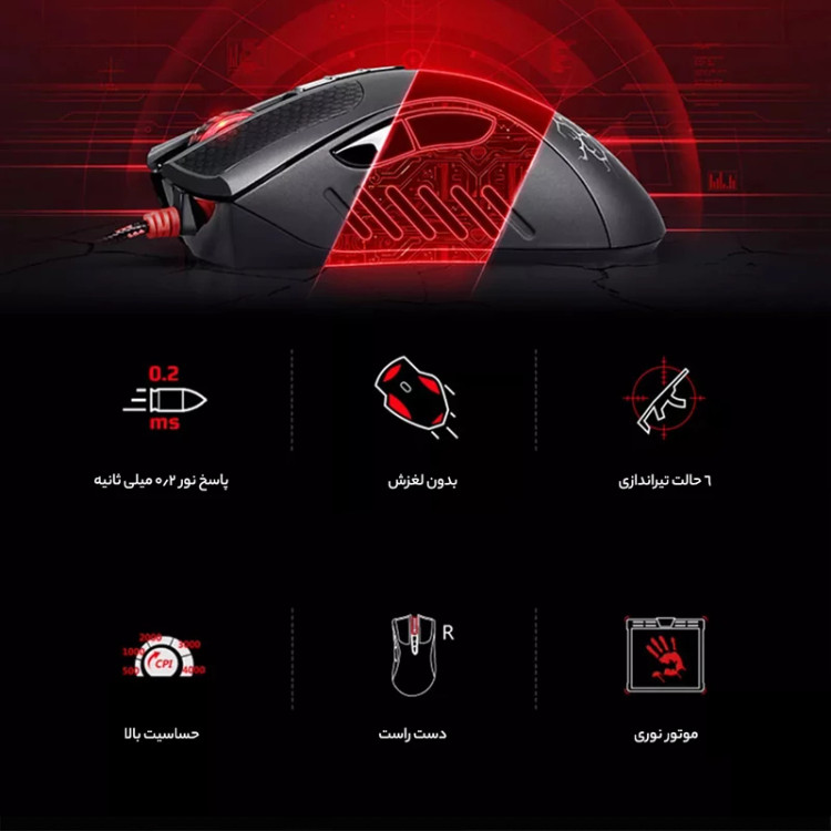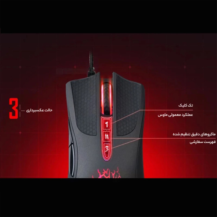 طراحی شده به صورت ارگونومیک، مجهز به 8 عدد کلید فیزیکی با حسگر اپتیکال و حداکثر دقت قابل تنظیم 6200DPI