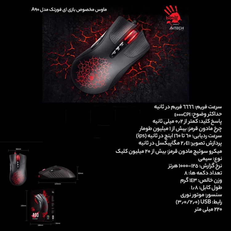 دارای طول عمر تقریبی 20 میلیون بار کلیک و حدود 1 میلیون اسکرول، سازگار با سیستم عامل های Windows 7 / 8 / 8.1 / 10/11