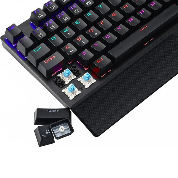 کیبوردی با نورپردازی RGB که به صورت پیشفرض با حالت رنگین کمانی شروع میکند، و دارای استراحتگاه مچ دست میباشد تا در ساعت های طولانی بازی کردن خستگی را احساس نکنید