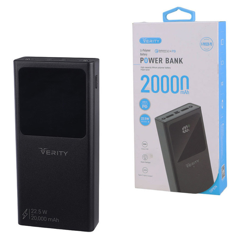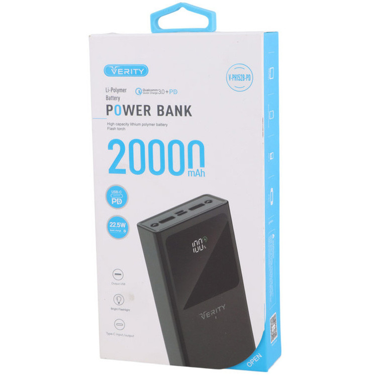 شارژر همراه 20000 میلی آمپر ساعت Verity مدل V-PH152B-PD ظرفیت 20000mAh با توان خروجی 22.5 وات