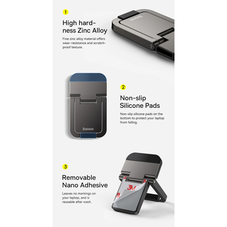 استند لپ تاپ باسئوس مدل LUZ00001 در دو رنگ به بازار عرضه شده است از کد LUZC000012 بیانگر رنگ نقره ای و کد LUZC000013 بیانگر رنگ طوسی می باشدایجاد فاصله ی مناسب با زاویه ۱۲ درجه بین سطح میز، زمین و ... به منظور گردش هوا در قسمت زیرین لپ تاپ و کاهش دمای دستگاهمتریال ساخت آلیاژ روی مقاوم در برابر ضربه و فشار، برخورداری از ابعاد کوچک به منظور سهولت در حمل محصولتعبیه سیلیکون در قسمت اتصال به لپ تاپ به منظور جلوگیری از لغزشموفق به کسب استاندارد سلامت و ایمنی محصول CEمناسب برای لپ تاپ های ۱۳ اینچ و بالاتر