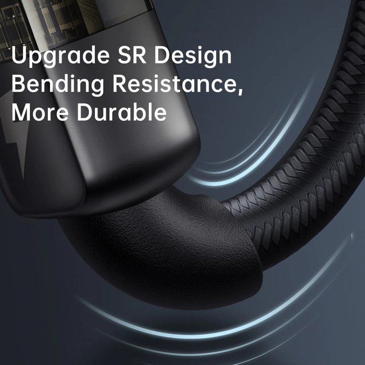 کابل به طول ۱۲۰ سانتی متر با روکش نایلون بهم بافته شده و مقاوم در برابر کشش، خمیدگی، پارگی و گره خوردن