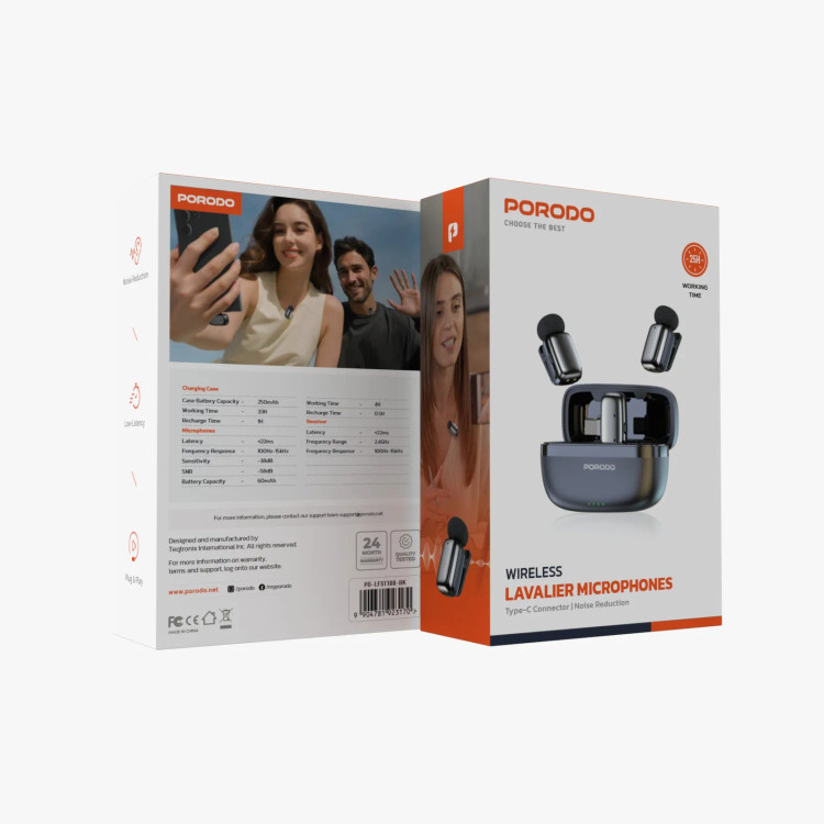 میکروفونهای بیسیم یقهای نوع C پرودو، ضبط صدای روان با تأخیر کم را تضمین میکنند و برای تولیدکنندگان محتوا، استریمرها و انواع متخصصان جذاب هستند. این میکروفونها دارای پاسخ فرکانسی ۱۰۰ هرتز تا ۱۵ کیلوهرتز و حساسیت -۳۸ دسیبل برای صدای با کیفیت، واضح و دقیق هستند. ظرفیت ۶۰ میلیآمپر ساعت در هر میکروفون، حدود ۴ ساعت استفاده مداوم را قبل از نیاز به شارژ مجدد فراهم میکند که تنها حدود ۰.۵ ساعت طول میکشد. در کنار آن، یک جعبه شارژ ۲۵۰ میلیآمپر ساعتی وجود دارد که در مجموع از ۳۳ ساعت کار پشتیبانی میکند. گیرنده در محدوده فرکانس ۲.۴ گیگاهرتز کار میکند و از کاهش نویز برای خروجی صدای واضحتر پشتیبانی میکند. با تأخیر کمتر از ۲۲ میلیثانیه، قابلیت اتصال و پخش و طراحی کاربرپسند، راهاندازی به یک فرآیند سریع و آسان تبدیل میشود. برای جلسات ضبط طولانی، گیرنده میتواند ۲۵ ساعت کار کند. این میکروفون بیسیم دقیق، کارآمد و با کارکرد آسان، تمام نیازهای صوتی شما را برآورده میکند.