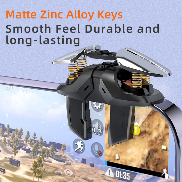 دسته بازی مغناطیسی JS61، دارای ۴ ماشه ی فلزی است. با نصب این دسته بازی پابجی و کالاف مغناطیسی میتوانید به صورت ۶ انگشتی با موبایل خود بازی کنید. در بازی های موبایل به خصوصپابجی موبایل Pubg Mobile، کالاف دیوتی موبایل Call Of Duty Mobile، اپکس موبایل Apex Legends Mobile، فری فایر موبایل Gerena Free Fire و… فرمان های بسیار زیادی برای کنترل کردن وجود دارد. این دسته بازی به شما کمک میکند تا بتوانید در لحظه علاوه بر فرمان حرکت، چهار فرمان دیگر مانند شلیک، نشانه گیری و… را کنترل کنید. یعنی میتوانید با دسته پابجی و کالاف دیوتی JS61 به صورت شش انگشتی بازی کنید. بازی ۶ انگشتی باعث می شود تا سرعت، دقت و تسلط شما در بازی چند برابر شود.