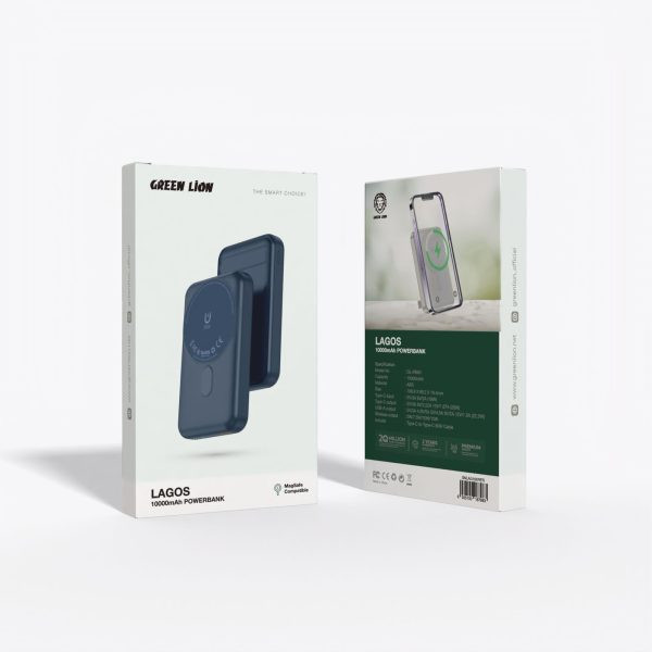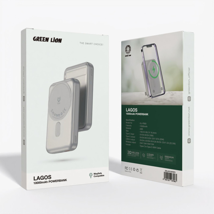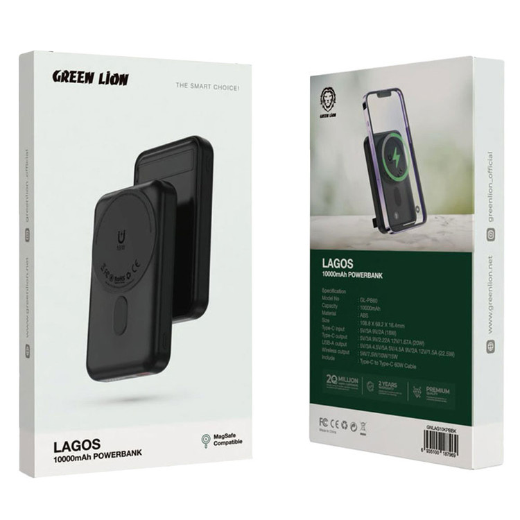 شارژر همراه فست شارژ وایرلس 10000 میلی آمپر ساعت Green Lion مدل Lagos GL-PB60 با توان خروجی 22.5 وات