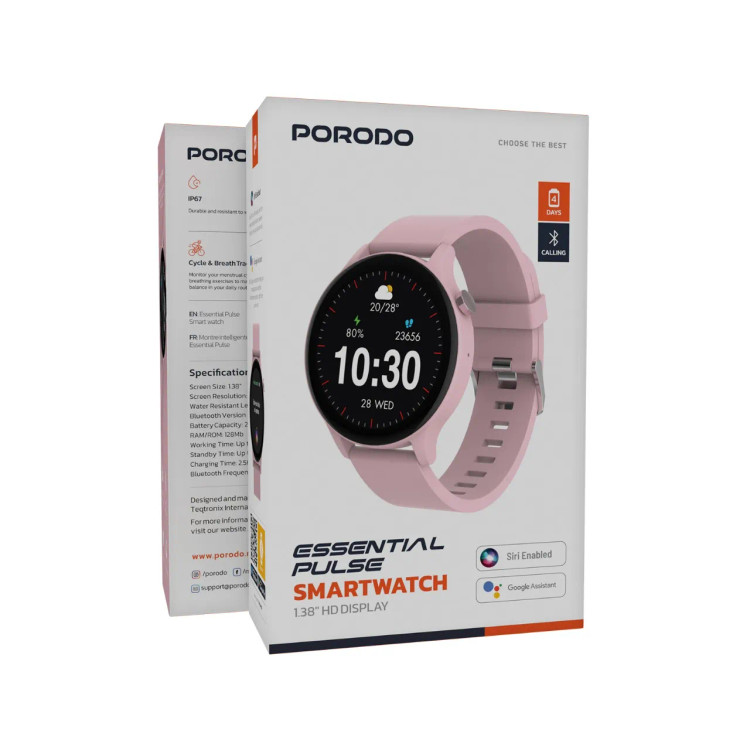 این ساعت هوشمند Porodo Essential Pulse با صفحه نمایش 1.38 اینچی HD TFT با وضوح 240×240 و تصاویر بسیار روشن و واضح ارائه میشود. این ساعت دارای نشان مقاومت در برابر آب IP67 است که آن را برای استفاده منظم در باران بادوام میکند. بلوتوث 5.4 اتصال سریع و پایدار برای برقراری تماس صوتی بلوتوث را تضمین میکند. باتری 210 میلیآمپر ساعتی آن چهار روز استفاده فعال و 12 روز حالت آماده به کار را فراهم میکند و با دو ساعت و نیم زمان شارژ سریع شارژ میشود. این ساعت که به ویژگیهای سلامتی برای نظارت بر ضربان قلب، خواب، چرخه و تنفس مجهز است، به حفظ سلامت فرد کمک میکند. صفحههای ساعت قابل تنظیم، انتخاب سبک شخصی را به همراه اطلاعات پیشبینی آب و هوا ارائه میدهند. ما در مورد ساعت هوشمند Porodo Essential Pulse صحبت میکنیم: ترکیبی عالی از سبک، عملکرد و عمر باتری برای تکمیل زندگی روزمره شما.