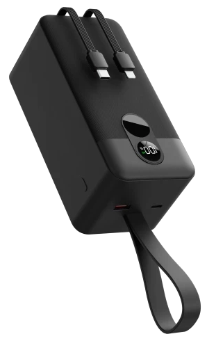 پاوربانک Porodo 50000mAh Integrated Cables - Black را انتخاب کنید که ظرفیت و قابلیت شارژ بسیار خوبی برای همه دستگاههای شما دارد. اکثر پاوربانکها چنین ظرفیتی دارند و دارای یک باتری عظیم 50000 میلیآمپر ساعتی (185 وات ساعت، 3.7 ولت) هستند که آن را به یک وسیله قابل اعتماد برای جابجایی تبدیل میکند. این پاوربانک دارای پورتهایی برای خروجیهای مختلف از جمله خروجی USB-C: 5V/3A، 9V/2.22A، 12V/1.67A و 20W؛ خروجی USB-A: 5V/3A، 9V/2A، 12V/1.5A و 22.5W برای شارژ سریع است؛ در حالی که کابلهای داخلی شامل خروجیهای USB-C و Lightning به ترتیب با ولتاژ 5V/3A و 5V/2.4A هستند. به این ترتیب، افراد میتوانند چندین دستگاه را به طور همزمان شارژ کنند و صفحه نمایش دیجیتال دقیقاً میزان شارژ باقی مانده در آن را نشان میدهد. طول عمر چرخه شارژ آن بیشتر یا مساوی ۳۰۰ بار است و در محدوده دمایی ۱۰- تا ۶۰ درجه سانتیگراد کار میکند که آن را برای مصارف روزمره بسیار مفید میسازد. ۳۵ دقیقه برای شارژ ۰٪ تا ۶۰٪.