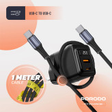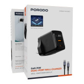 شارژر دیواری دو پورت Porodo PDFWCH076CBK GaN 25W