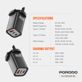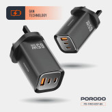 شارژر دیواری سه پورت Porodo PD-FWCH037 65W