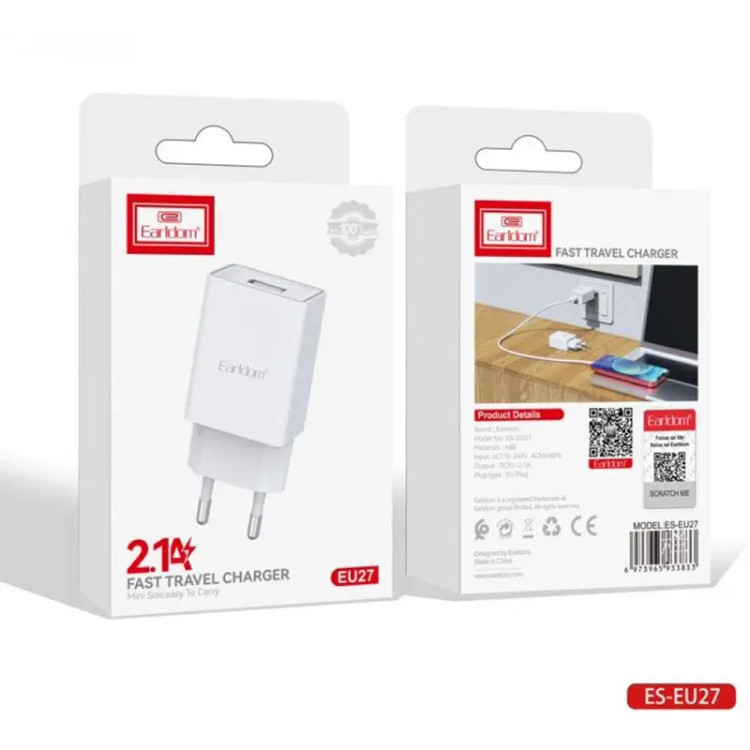 دارای دوشاخه EU و یک درگاه خروجی USB با شدت جریان و ولتاژ 2.1 آمپر در 5 ولت