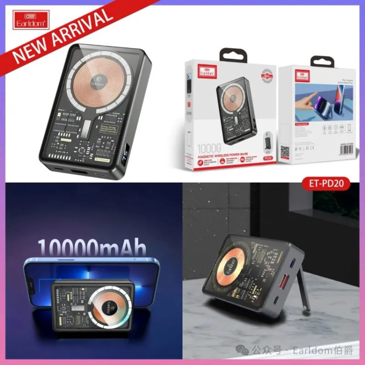 پاور بانک بی سیم فست شارژ ارلدام ET-PD20 PD 22.5W ظرفیت 10000 میلی آمپر ساعت