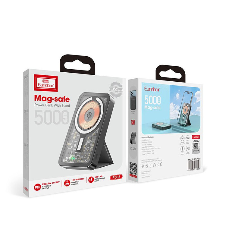 پاور بانک بی سیم فست شارژ ارلدام ET-PD32 QC PD 22.5W ظرفیت 5000 میلی آمپر ساعت