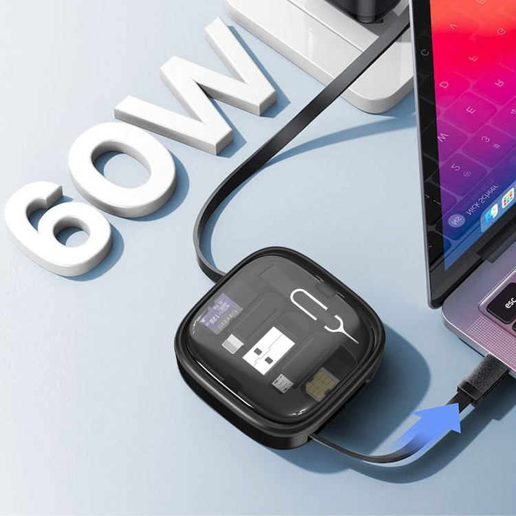 مجهز به یک عدد کابل تایپ سی به تایپ سی یک متری با حداکثر توان خروجی 60 وات و قابلیت جمع شوندگی