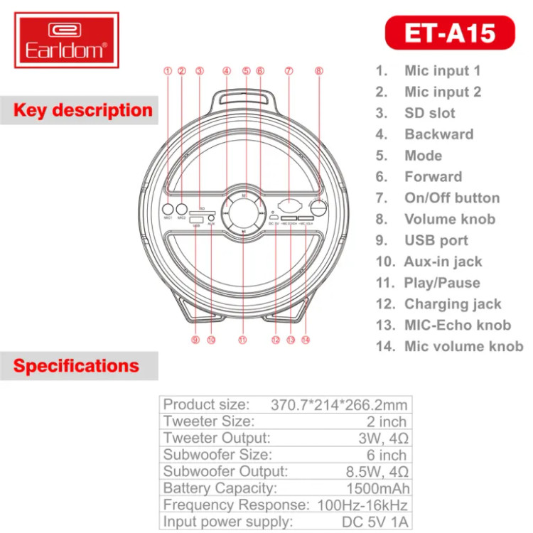 اسپیکر بی سیم قابل حمل Earldom مدل ET-A15