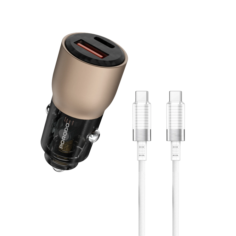 شارژر فندکی + کابل تایپ سی 95W شفاف Porodo PD-FWCH048-C