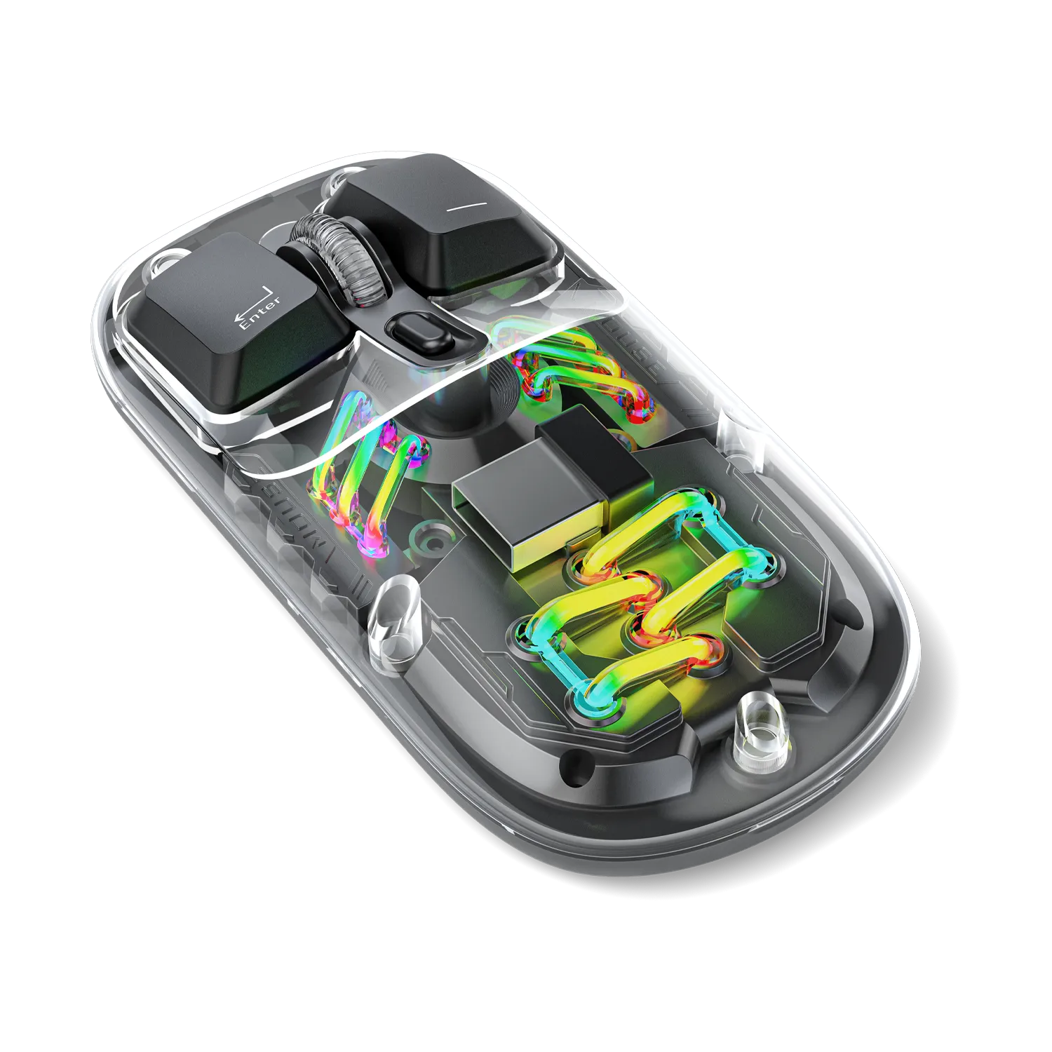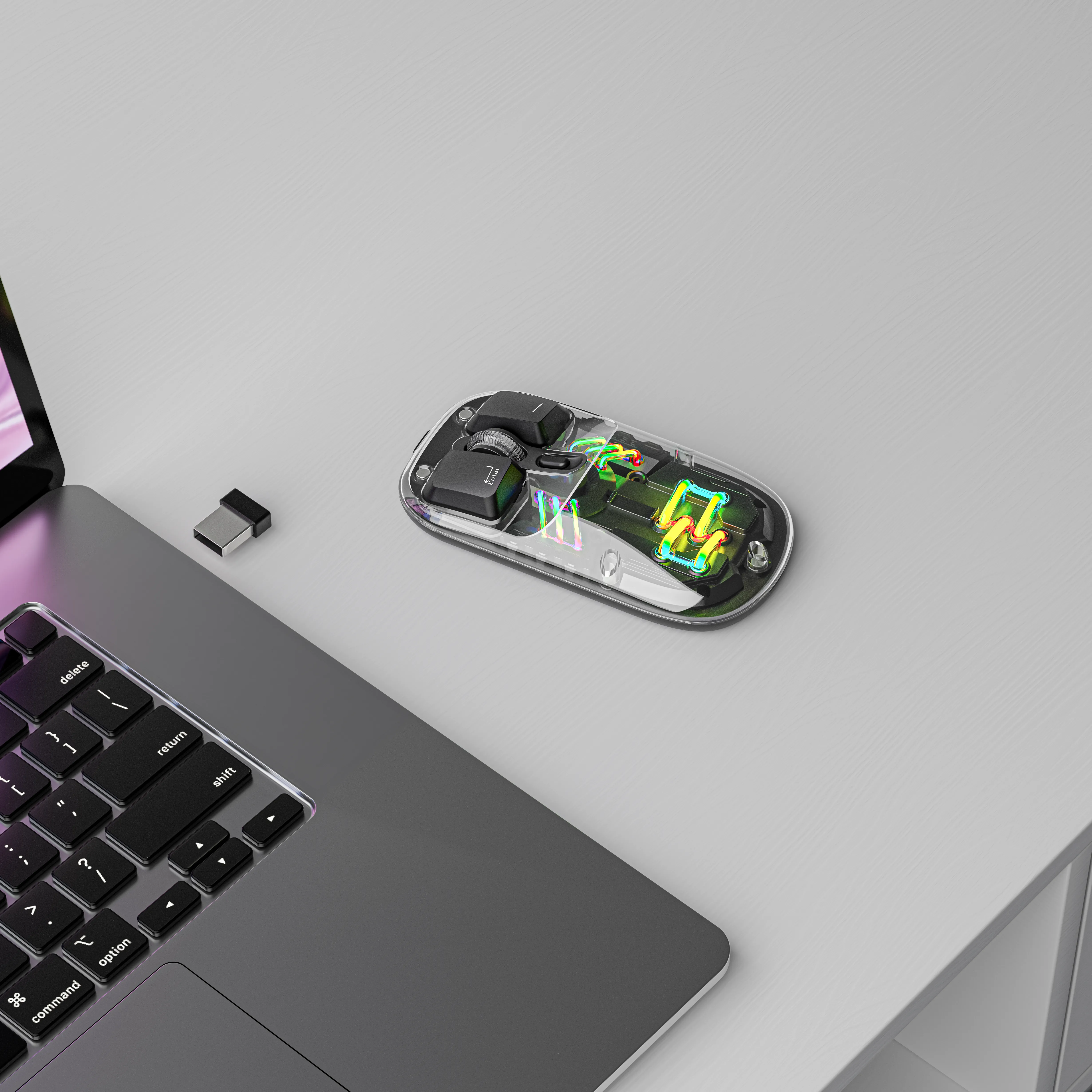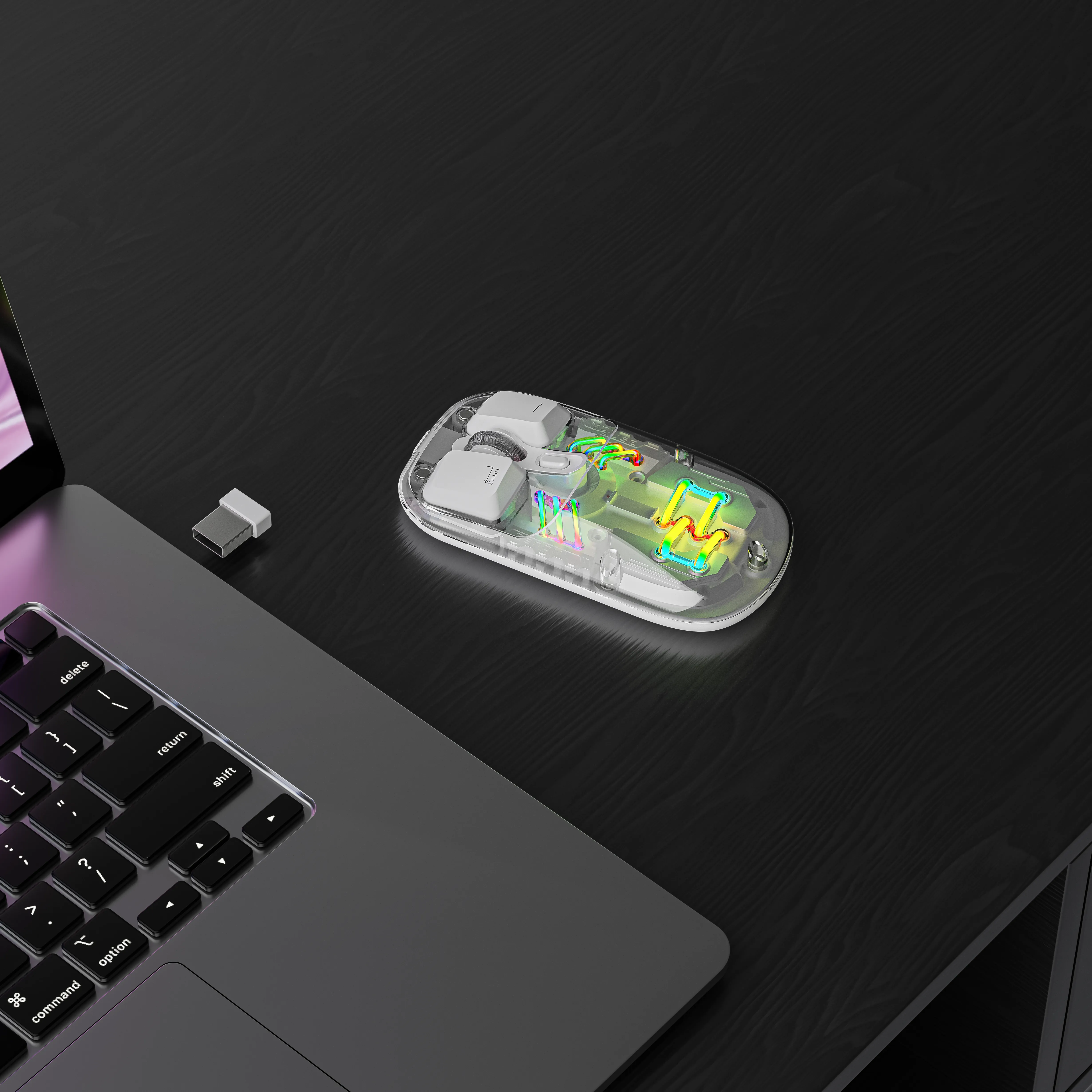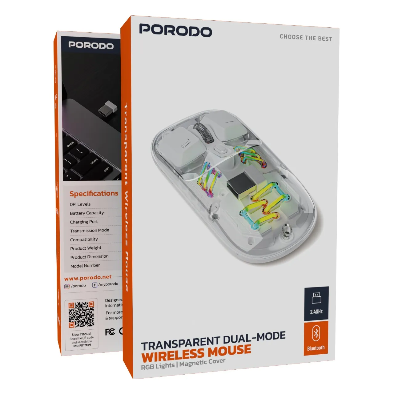 پورودو ماوس بیسیم دو حالته شفاف را معرفی میکند، دستگاهی عالی برای به حداکثر رساندن زیبایی و راحتی لپتاپ یا کامپیوتر شما. این ماوس دارای ظرفیت باتری ۴۰۰ میلیآمپر ساعت، نور RGB و DPI قابل تنظیم (۸۰۰، ۱۲۰۰، ۱۶۰۰) است. میتوانید به سادگی از طریق بلوتوث یا حالت بیسیم متصل شوید و آن را از طریق پورت Type-C شارژ کنید. علاوه بر این، با ویندوز، مک، اندروید و iOS سازگار است.