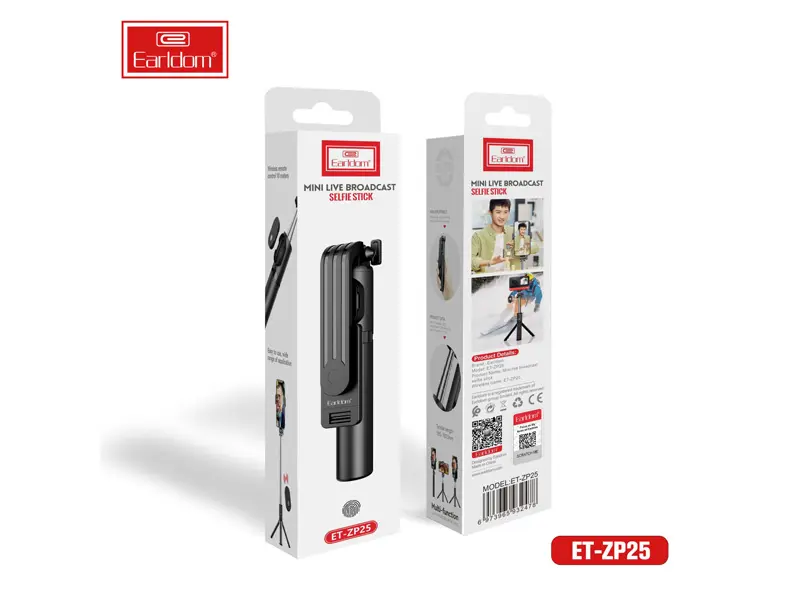 امکان قرارگیری گوشی داخل براکت و چرخش 360 و 185 درجه، همراه ۱ ریموت بلوتوث نسخه 4.2 با برد اتصال 10 متری