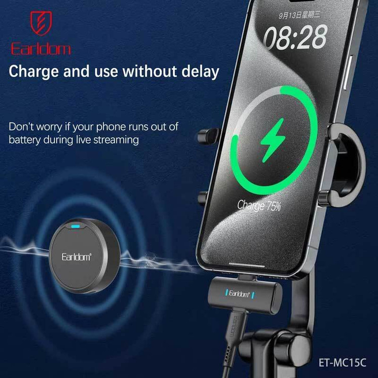 میکروفون یقه ای دوتایی وایرلس ارلدام مدل ET-MC15C با رابط تایپ سی