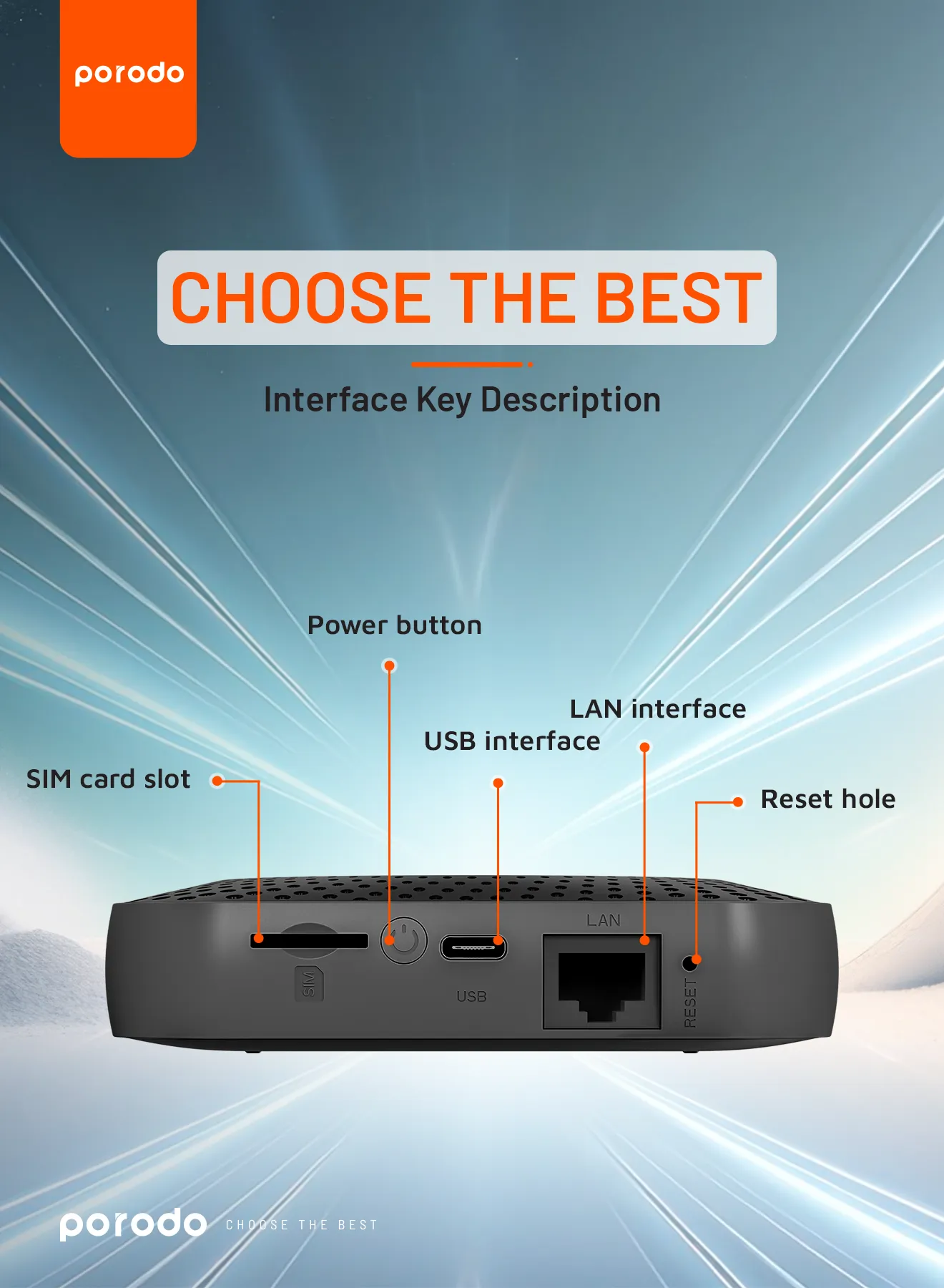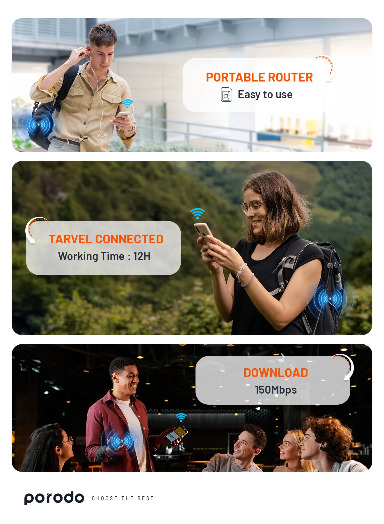 Porodo PD-4GCPMF Portable CPE MiFi 3G/4G Wireless Router