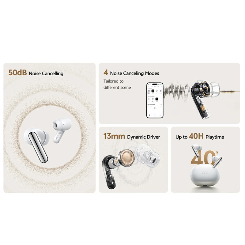 قطر درایور ها برابر با 13 میلی متر، دارای 6 عدد میکروفون با پشتیبانی از فناوری کاهش نویز ANC