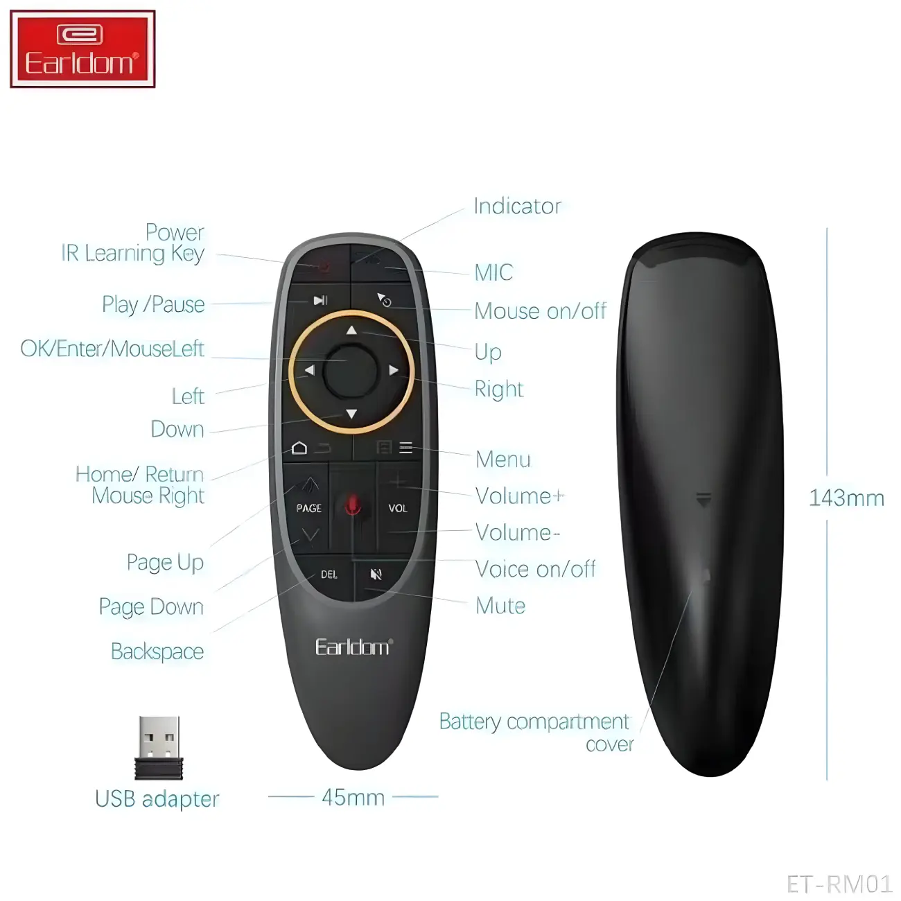 مناسب برای تلویزیون، TV Box، HTPC، کامپیوتر و ...، تامین انرژی از طریق 2 عدد باتری نیم قلمی سایز AAA