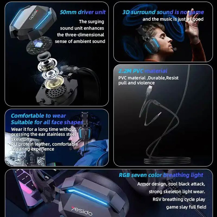 هدست گیمینگ سیم دار Yesido EK03