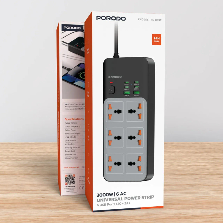 چند راهی برق هوشمند Porodo PDFWCH100 6AC 3000W