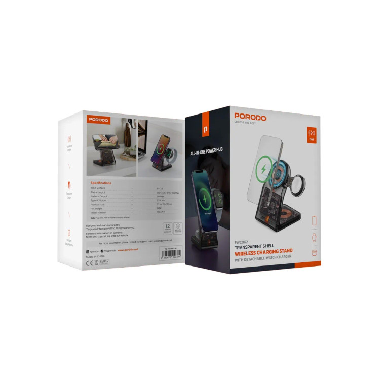 پایه شارژ رومیزی بیسیم شفاف Porodo PD-FWCH062