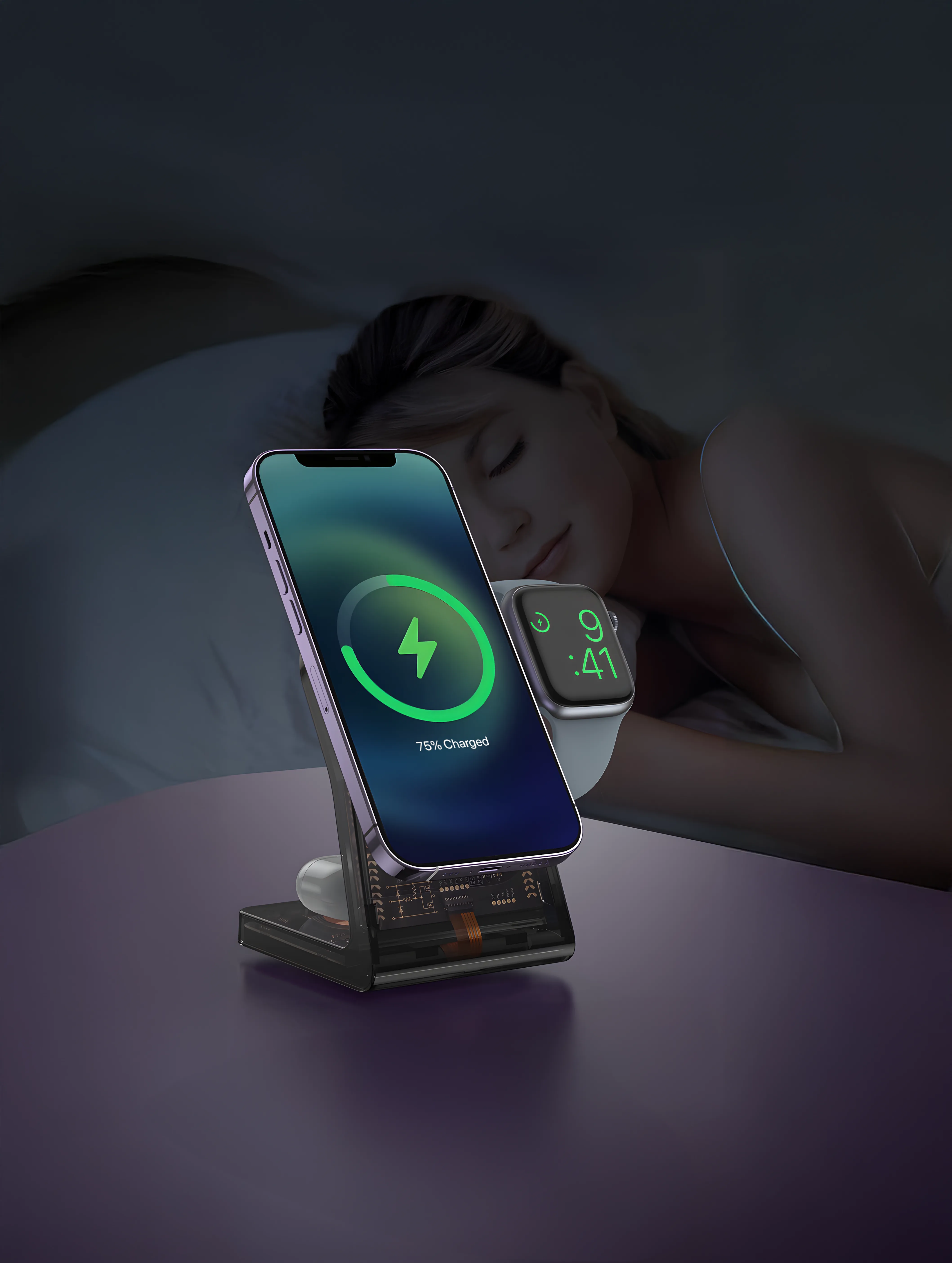 شارژ چند دستگاه / طراحی شفاف / حفاظت ایمنی هوشمند / شارژ بیسیم ۱۵ واتی