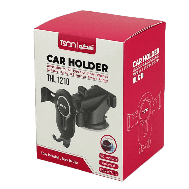 پایه نگهدارنده 1210 یا هولدر خودرو تسکو مدل THL 1210 با وزن کم و ابعاد مناسب برای انواع گوشی 3 تا 6.5 اینچ می باشد و بدون مداخله در دید راننده خودرو ، آن را در داشتن سفری ایمن یاری می کند.هولدر 1210 THL میتواند وزن اکثر گوشی ها تا سایز 6.5 اینچ را به راحتی و بدون نگرانی تحمل کند . از طریق گیره های نگه دارنده و چرخش 360 درجه در هولدر 1210 THL می توانید گوشی خود را نگهدارید. هولدر 1210 تسکو دارای قابلیت تنظیم ارتفاع و زاویه است.
