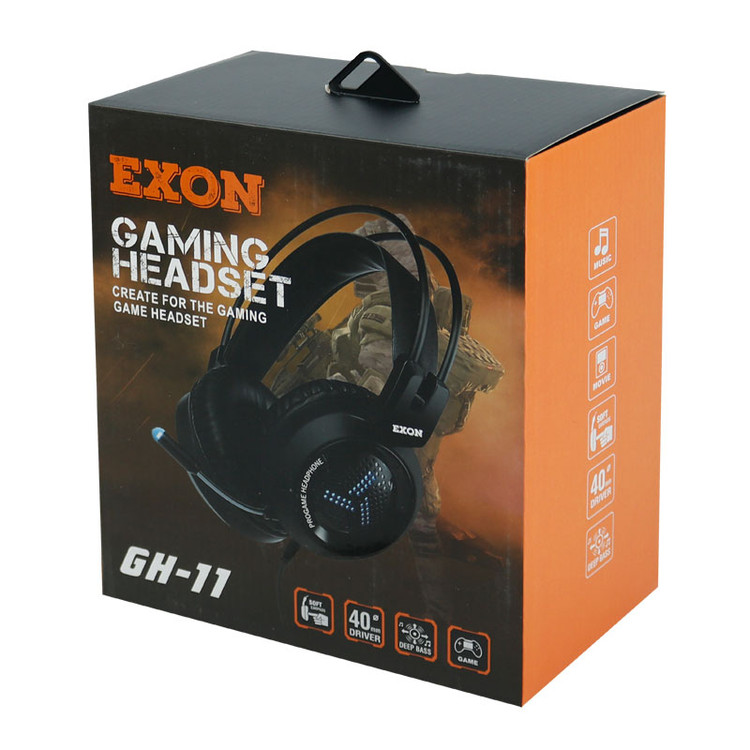 هدفون گیمینگ GH-11 محصولی از برند اکسون می باشد و همانطوری که از نام آن پیداست برای کاربری گیمینگ طراحی شده و دارای اتصال با سیم است. برای این محصول یک رابط جک ۳٫۵ میلی متری طراحی شده و دارای پورت USB هم می باشد. قطر درایور این محصول برابر با ۴۰ میلی متر است و پوشش مناسبی روی گوش خواهد داشت و صدا را با وضوح مناسب به گوش کاربر خواهد رساند. همچنین بالشتک های EXON GH-11 با توجه به طراحی ارگونومیکی برای استفاده طولانی مدت مناسب هستند. برای این محصول یک میکروفون و کلید مدیریت میزان صدا قرار داده شده است. . برای اکسون کابلی به طول ۲٫۶ متر طراحی شده و قابلیت اتصال به ps4، pc را دارد. این هدفون با پاسخ فرکانسی ۲۰-۲۰۰۰۰ هرتز، امپدانس ۳۲ اهم و حساسیت ۹۸ دسی بل صدای واضحی را به گوش کاربر خواهد رساند. ویژگی خاص این محصول نورپردازی RGB آن است که زیبایی خاصی به آن بخشیده است.