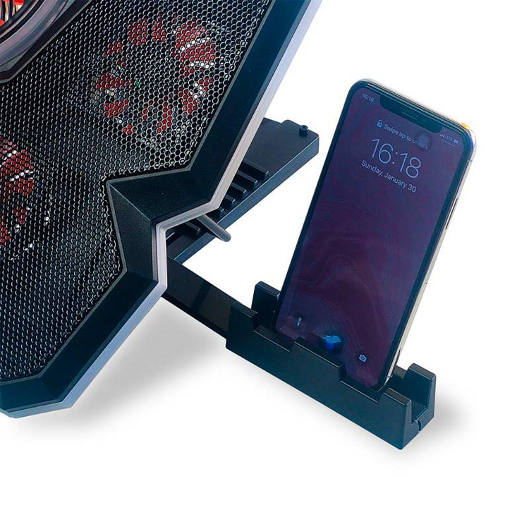 دارای دو عدد گیره کوچک تاشو بر روی بدنه کول پد به عنوان هولدر لپ تاپ