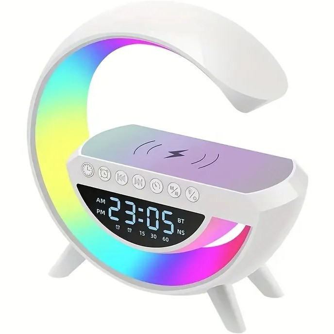 محصول پیش رو یک گجت هوشمند است که نیازهای زیادی از شما را مرتفع میکند ، از مهمترین ویژگی های این محصول میتوان به شارژ بیسیم 15 واتی ،اسپیکر بلوتوثی باکیفیت و خوش صدا ، باتری داخلی و قابل حمل ، چراغ خواب با رنگهای متنوع و قابل تغییر ، رادیو ، ورودی usb و رم میکرو یو اس بی ، ساعت رومیزی ، آلارم بیدار باش ، پخش صدای طبیعت و آرامشبخش و مدیتیشن و بسیاری قابلیت های دیگر برشمرد . کارایی این محصول به قدری زیاد و خیره کننده است که در باور نمیگنجد و قطعا مشتریانش را شگفت زده خواهد کرد . این گجت هوشمند خارجی بوده و از کیفیت ساخت بالایی برخوردار است و با وجود داشتن باتری داخلی و رقص نور جذاب میتوان از آن بعنوان اسپیکر پرتابل در جشنها و میهمانیها بهره برد و قطعا شما را ذوق زده خواهد کرد .