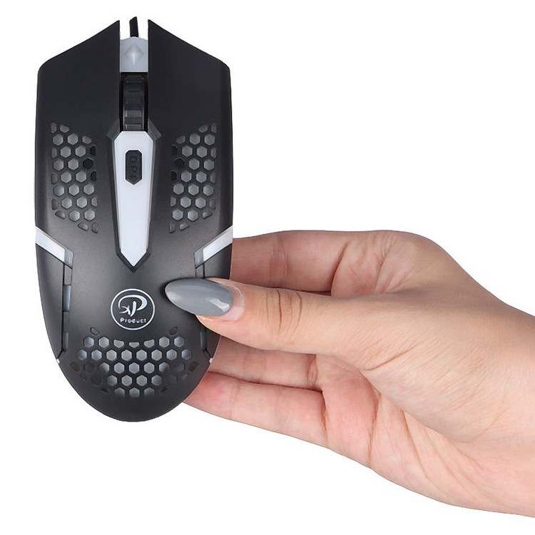 موس با 4 عدد کلید فیزیکی، دارای حسگر اپتیکال و امکان تنظیم میزان دقت توسط دکمه DPI تعبیه شده بر روی بدنه موس