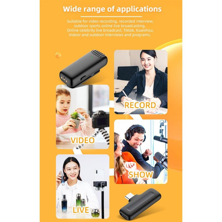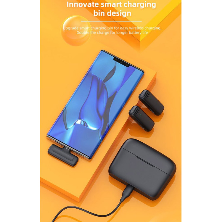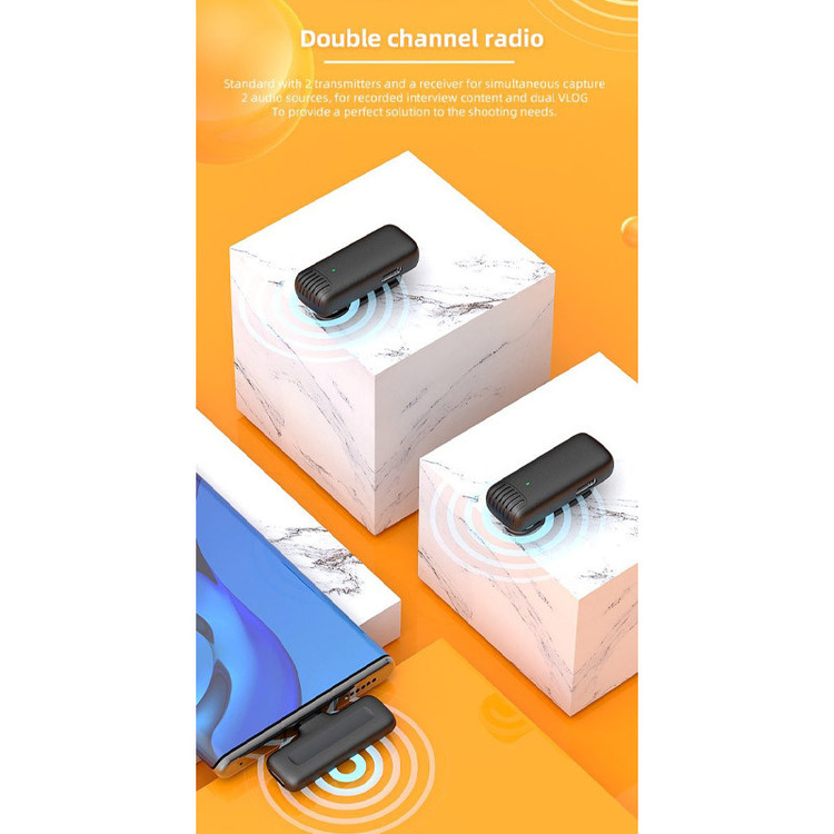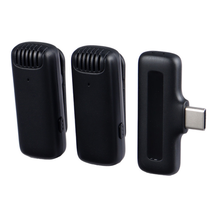 شامل دو فرستنده و گیرنده با ارتباط بی سیم، مجهز به رابط تایپ سی جهت اتصال به گوشی ها و سایر دستگاه ها با درگاه Type-C