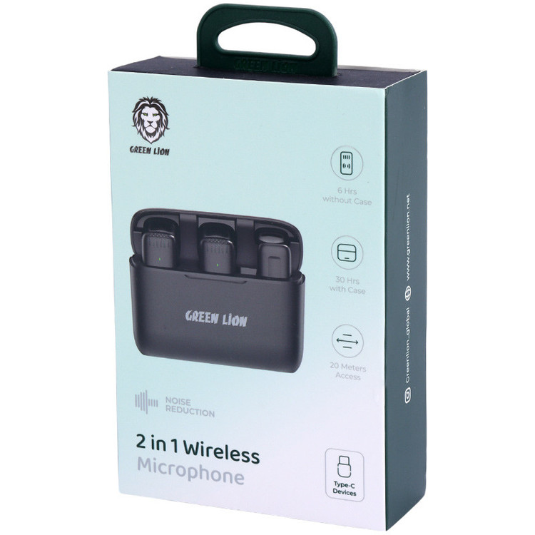 میکروفون یقه ای دوتایی وایرلس گرین لاین مدل GN2WMICTYCBK با رابط Type-C