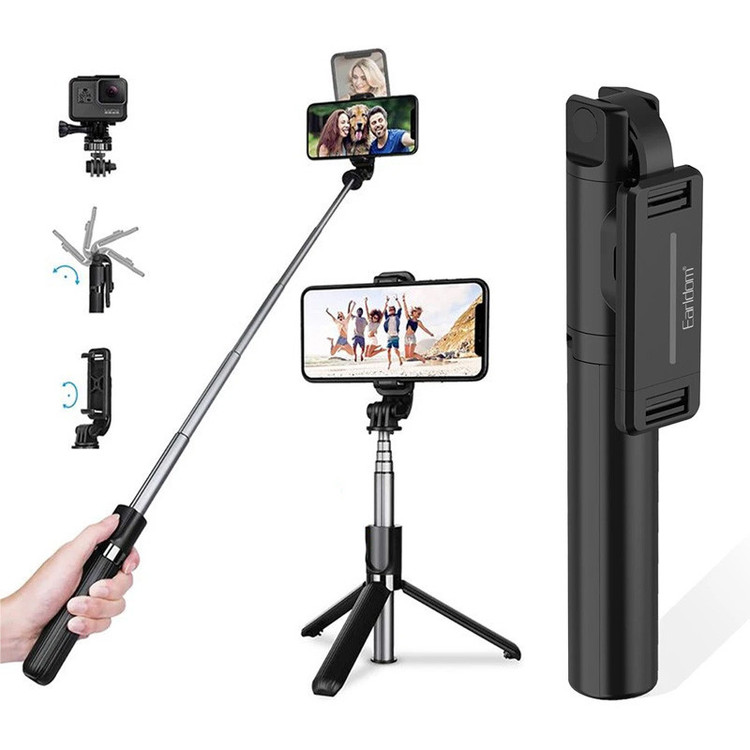 براکت با قابلیت نگهداری و چرخش گوشی موبایل، به همراه ریموت بلوتوثی نسخه 4.2 با برد اتصال حدود 10 متر